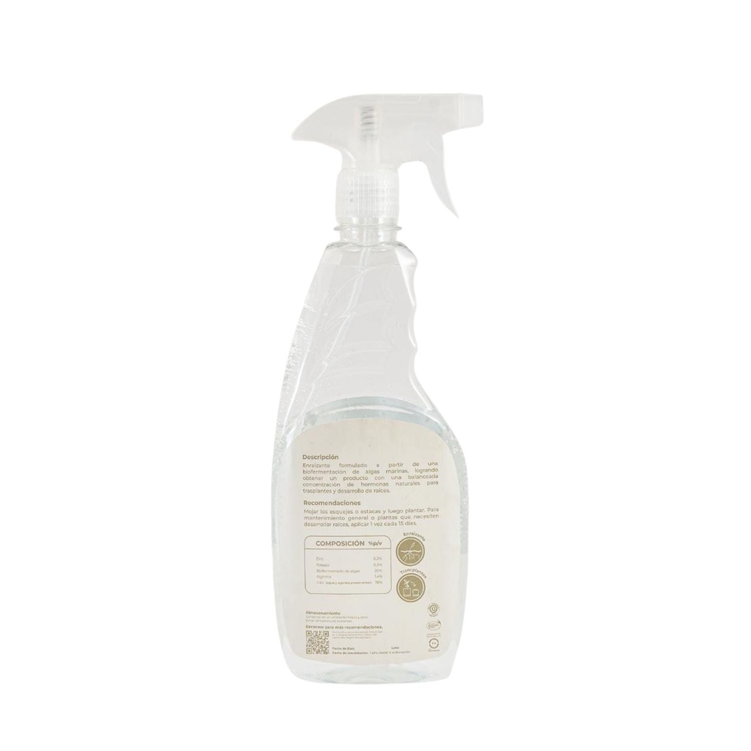 Bioestimulante para trasplantes y fortalecimiento de raíces, con algas marinas y microorganismos.