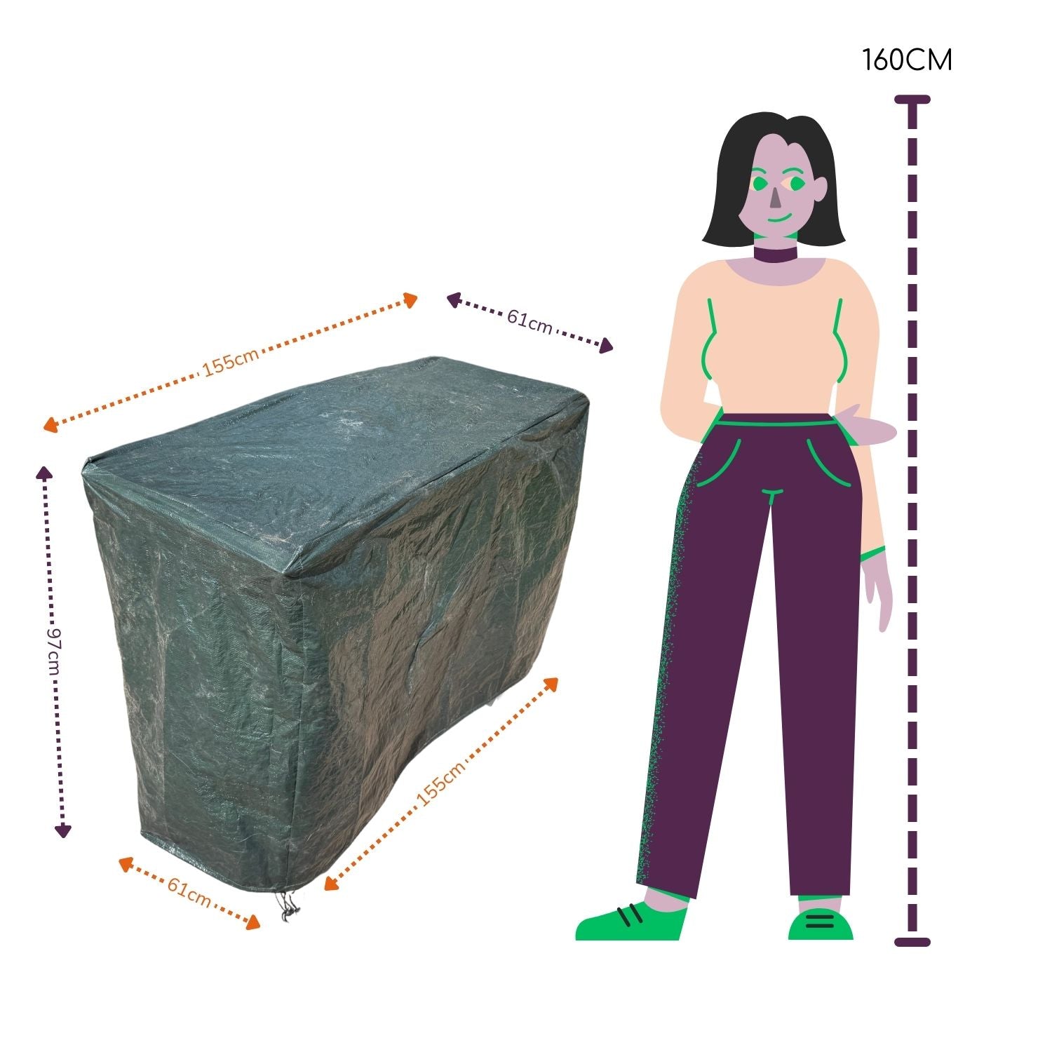 Esta funda para parrilla mide 155 x 61 x 97 cm, que se adapta a la mayoría de parrillas. No importa la marca de parrilla que tengas, nuestra funda de parrilla les dará una protección perfecta.
