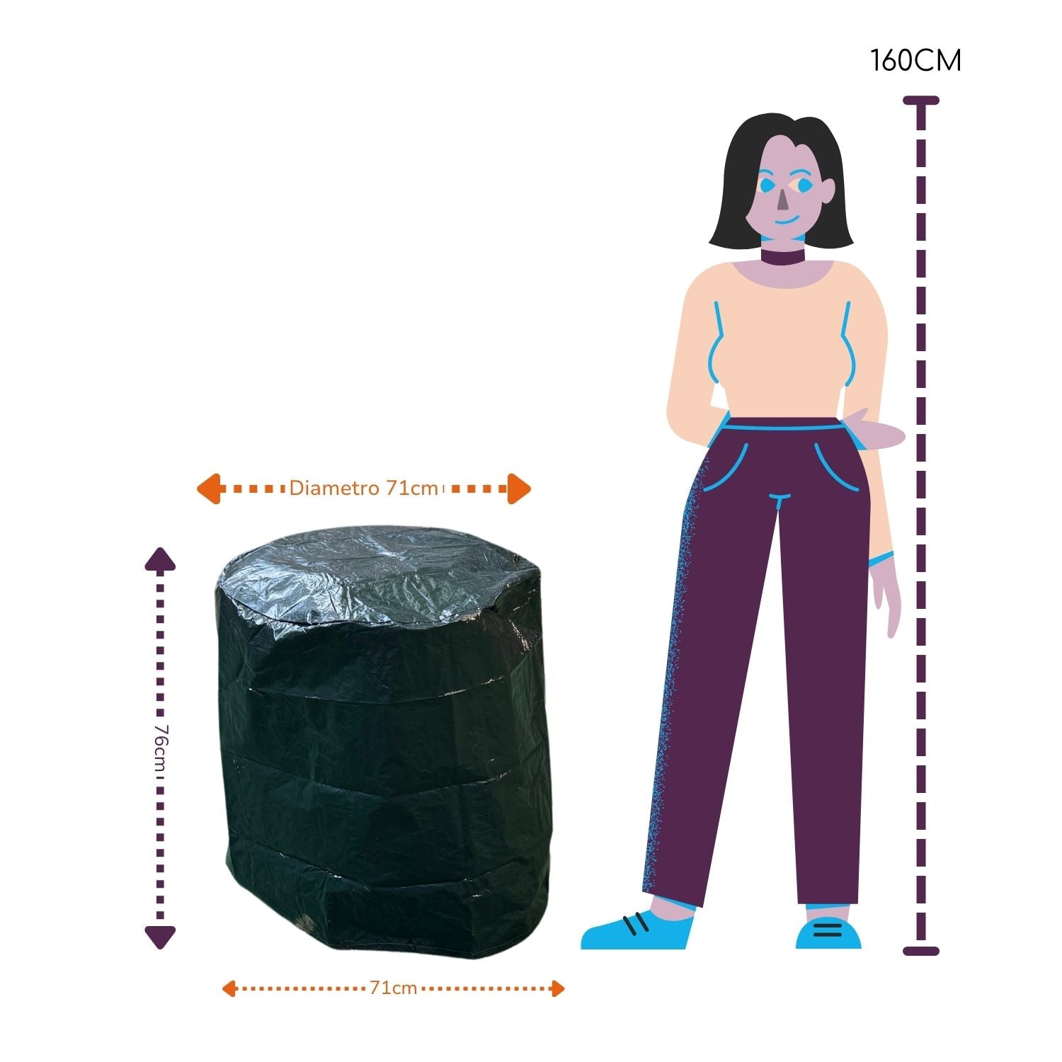 Funda Universal Multiproposito Ema70 tiene la forma de un cilindrica, de color verde, está hecha para proteger multiples productos o lugares tales como parrilla, estufas, firepit, cajas, muebles de terrazas, sillones o cualquier cosa que de la intemperie. Fabricada en polimero 110g PE, es un material resistente para soportar los exposición prolongada al son sin degradarse. Resiste lluvia, agua, polvo, viento y a los rayos UV , protegiendo tus artefactos del ambiente hostil, como viento fuerte, lluvia, tormentas, sol intenso, insectos, nieve, etc.