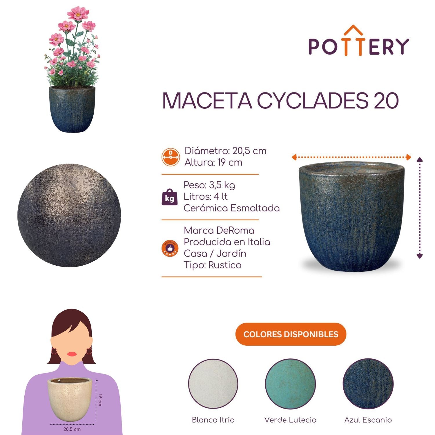 Las macetas Cyclades son pieza decorativas que evoca la serenidad y la elegancia atemporal de las islas griegas. Elaborada con esmero en Italia por la reconocida marca Deroma, esta maceta está hecha de arcilla 100% natural, un material transpirable que cuida de tus plantas y las hace crecer sanas y fuertes.